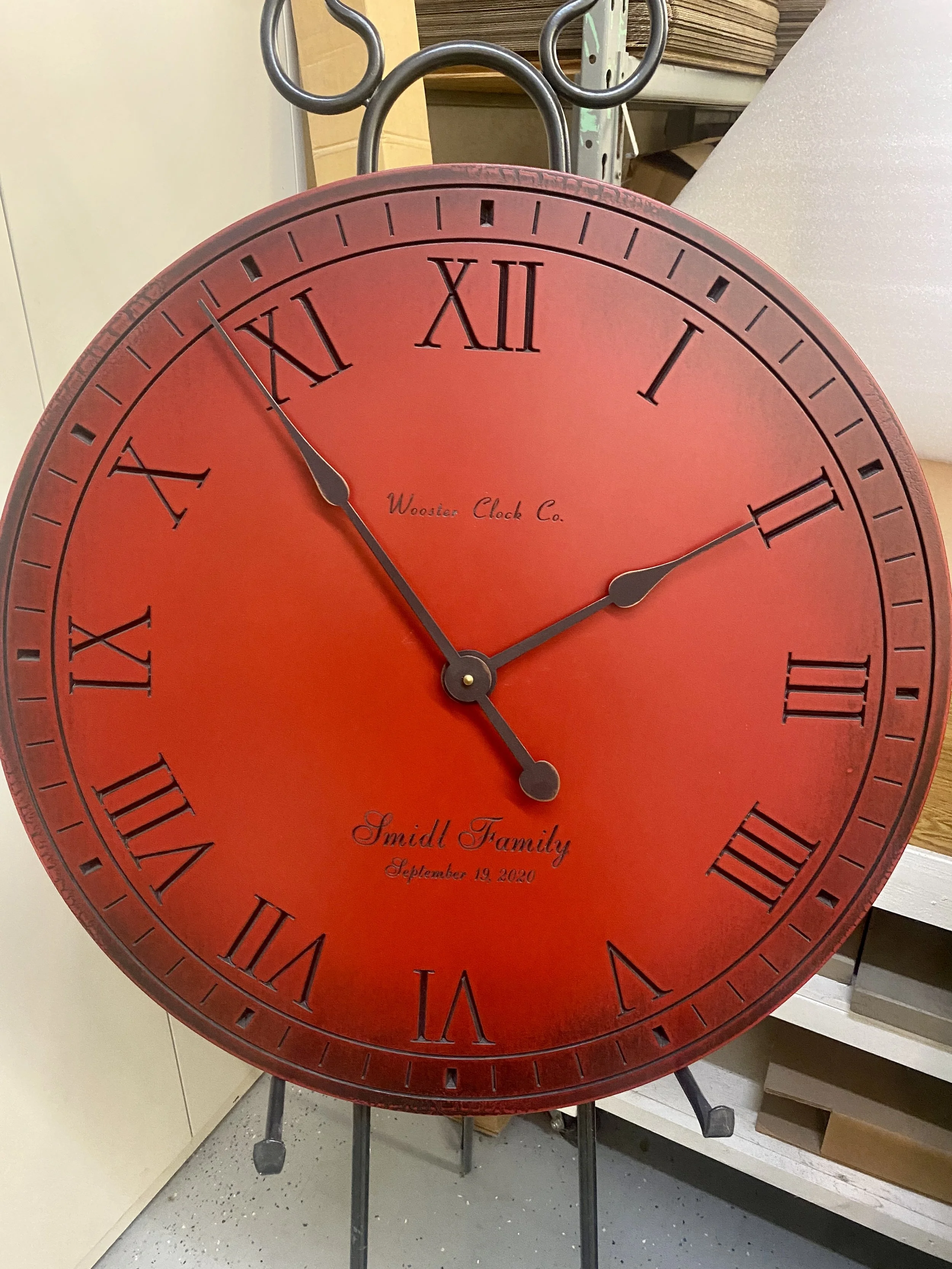 Every Wooster Clock Company clock is made to order. There are three primary sizes to choose from 17”, 24”, and 31”. A variety of colors are available to choose from when selecting your order.