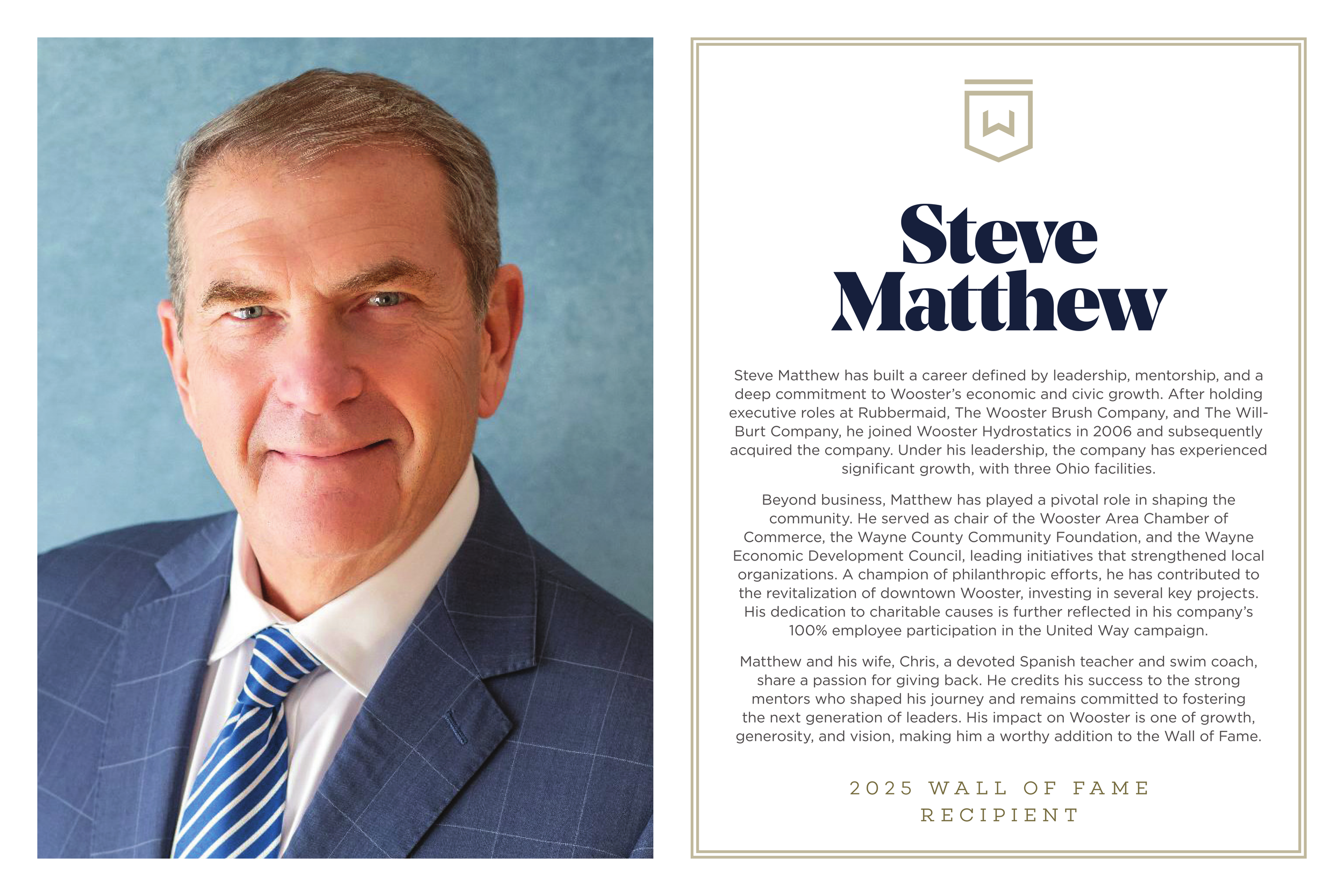 The Wall of Fame is presented annually to an individual(s) for a lifetime of achievement in the Wooster area. To reward an individual's philanthropic efforts based upon time, energy, and monetary contributions aiding both the business and social environments of the community.