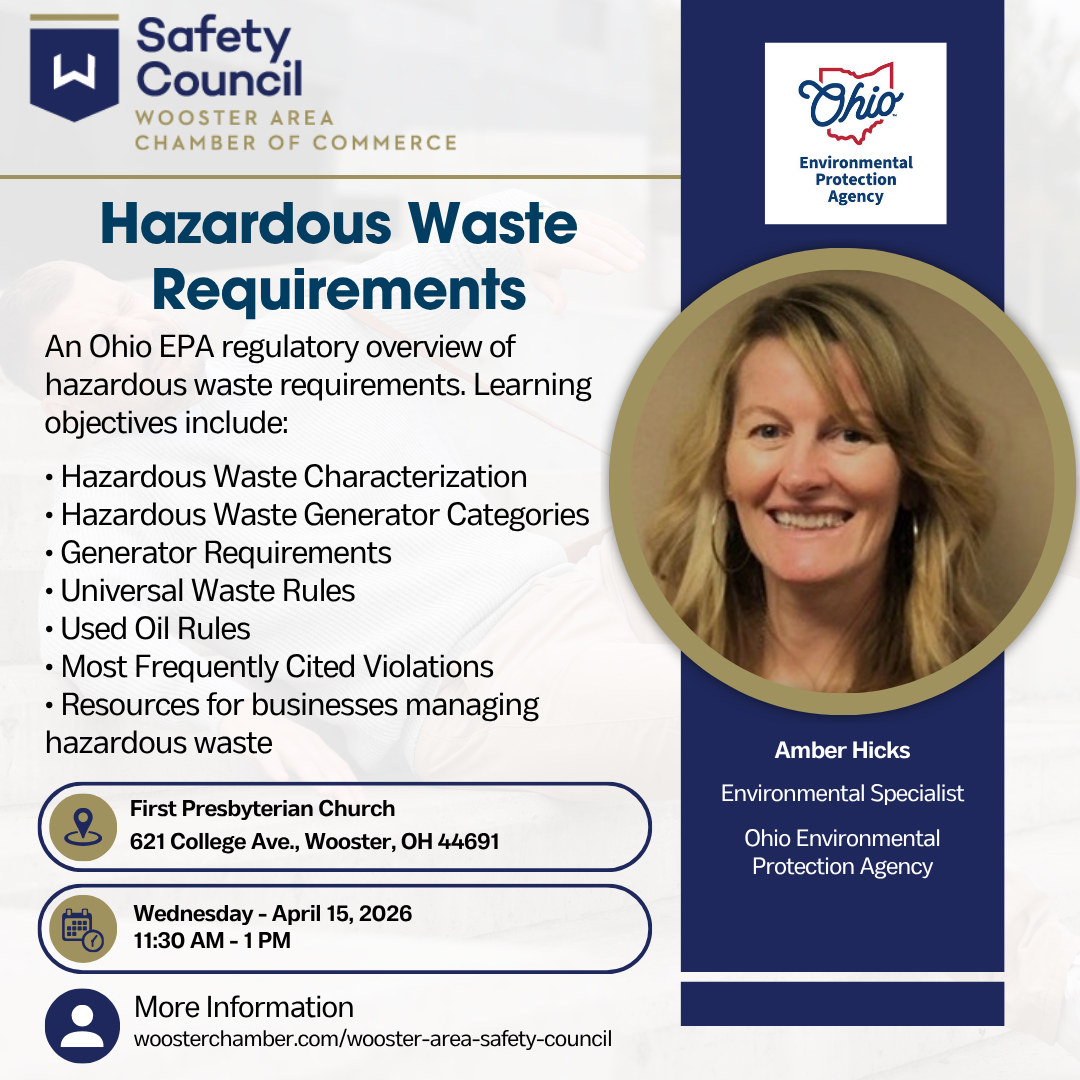 Join us for our next Safety Council meeting as we welcome Amber Hicks, Environmental Specialist at the Ohio EPA, for an essential deep dive into navigating hazardous waste regulations.