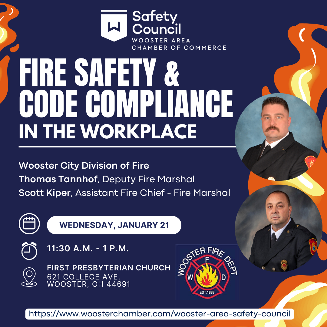 Joining the Wooster Area Safety Council can help lower your workers’ compensation costs. You’ll learn risk management information and strategies to reduce costs and you can earn a 3% safety council rebate on your premium. Meetings are held monthly at the First Presbyterian Church located at 621 College Ave. Wooster, OH 44691.